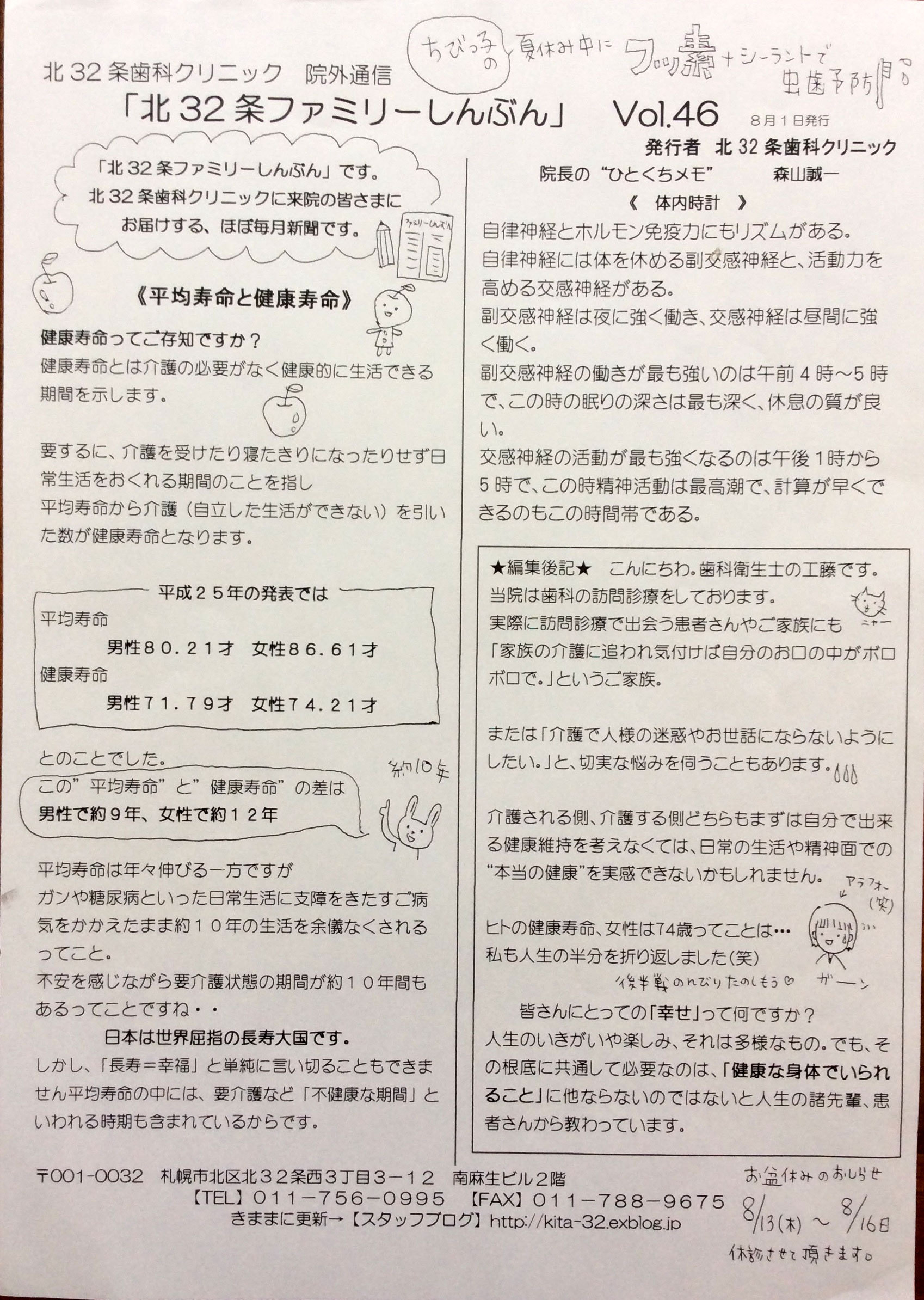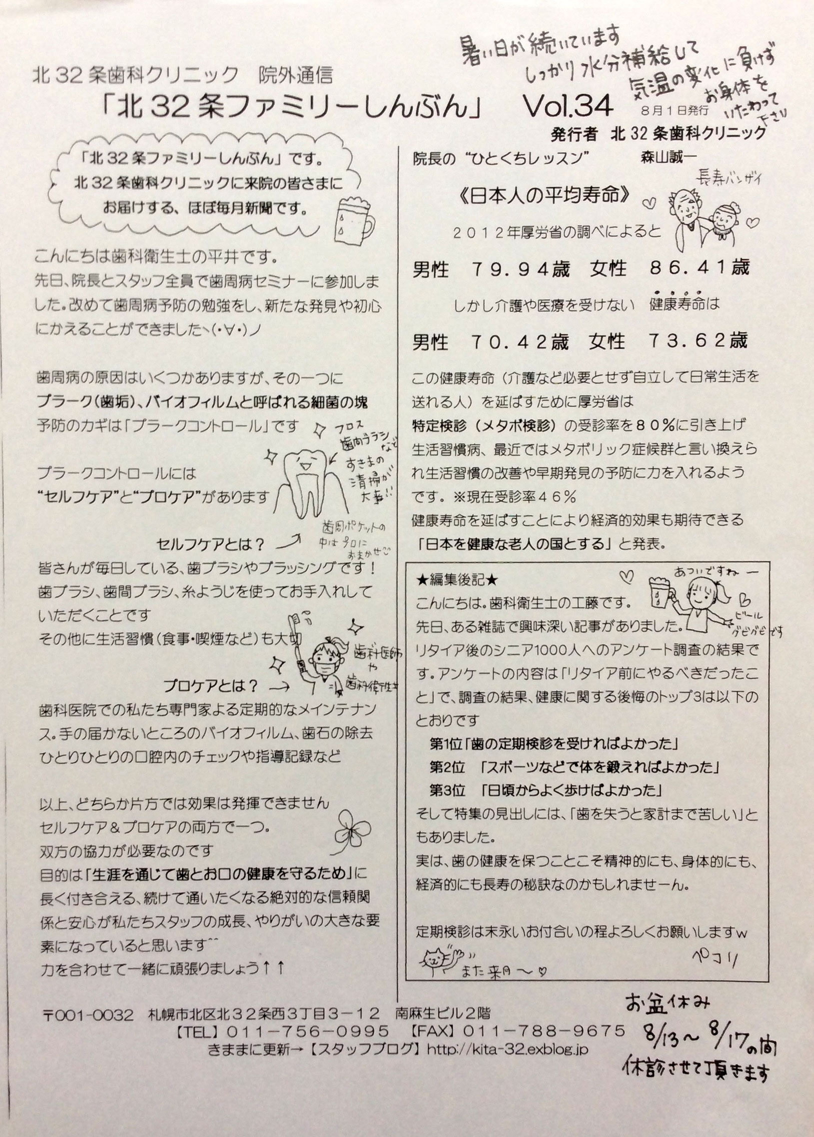 北32条ファミリーしんぶん|当院について|フォトギャラリー| スタッフブログ